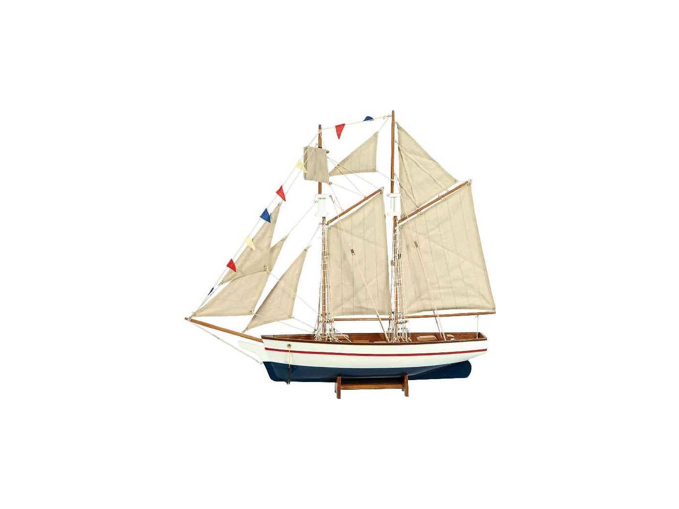 Ξύλινο Παραδοσιακό Καράβι ,Χρώμα Λευκό - Μπλέ 150 x 23 x 136(h) εκ.