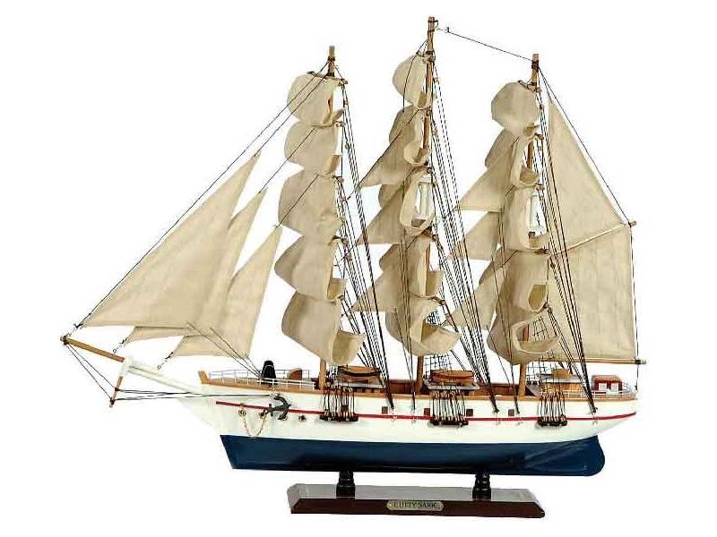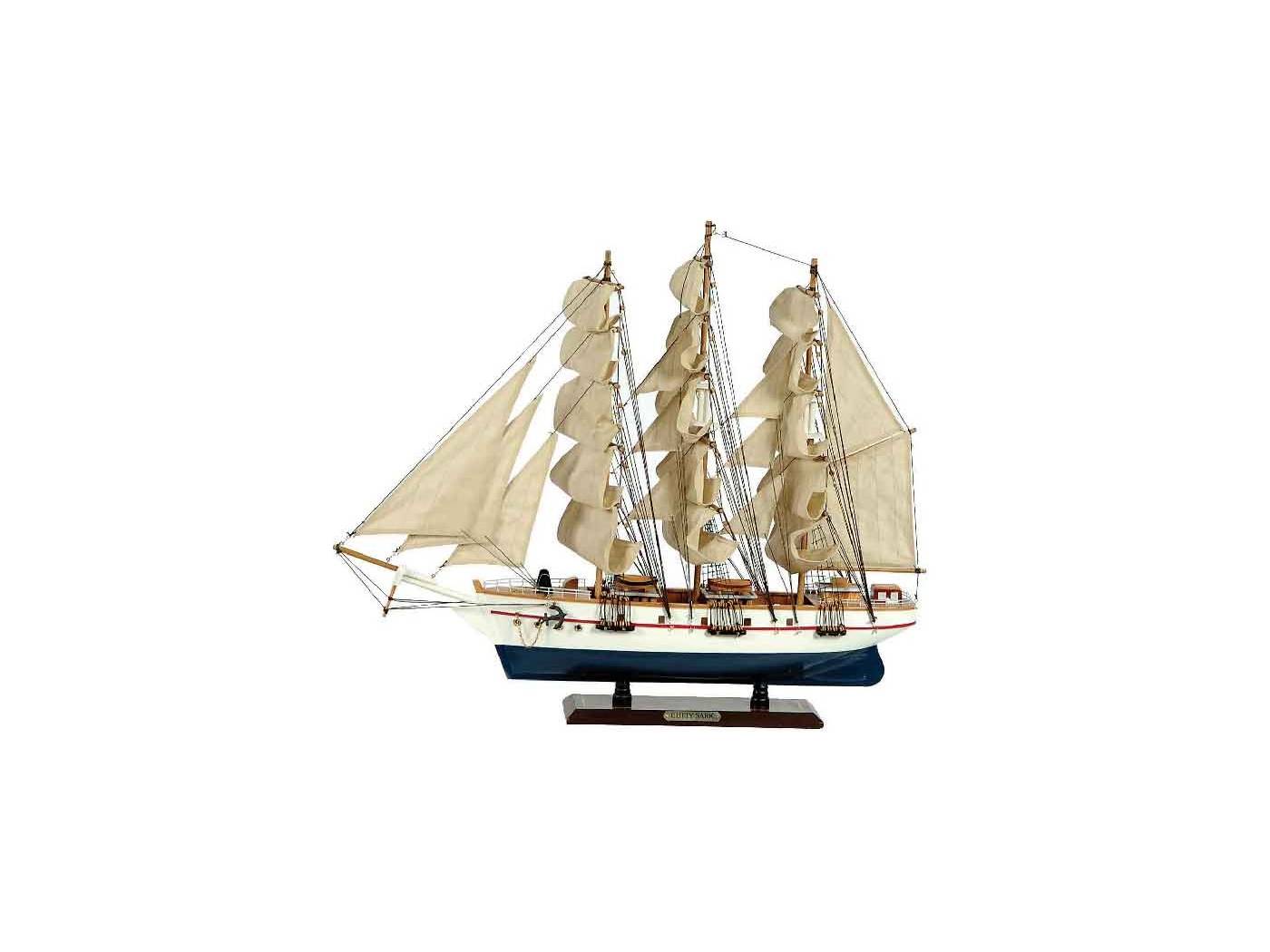 Ξύλινο Παραδοσιακό Καράβι 50 x 10 x 45 (H) εκ. Χρώμα Λευκό - Μπλέ