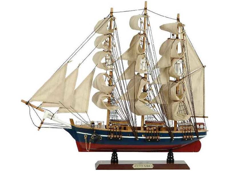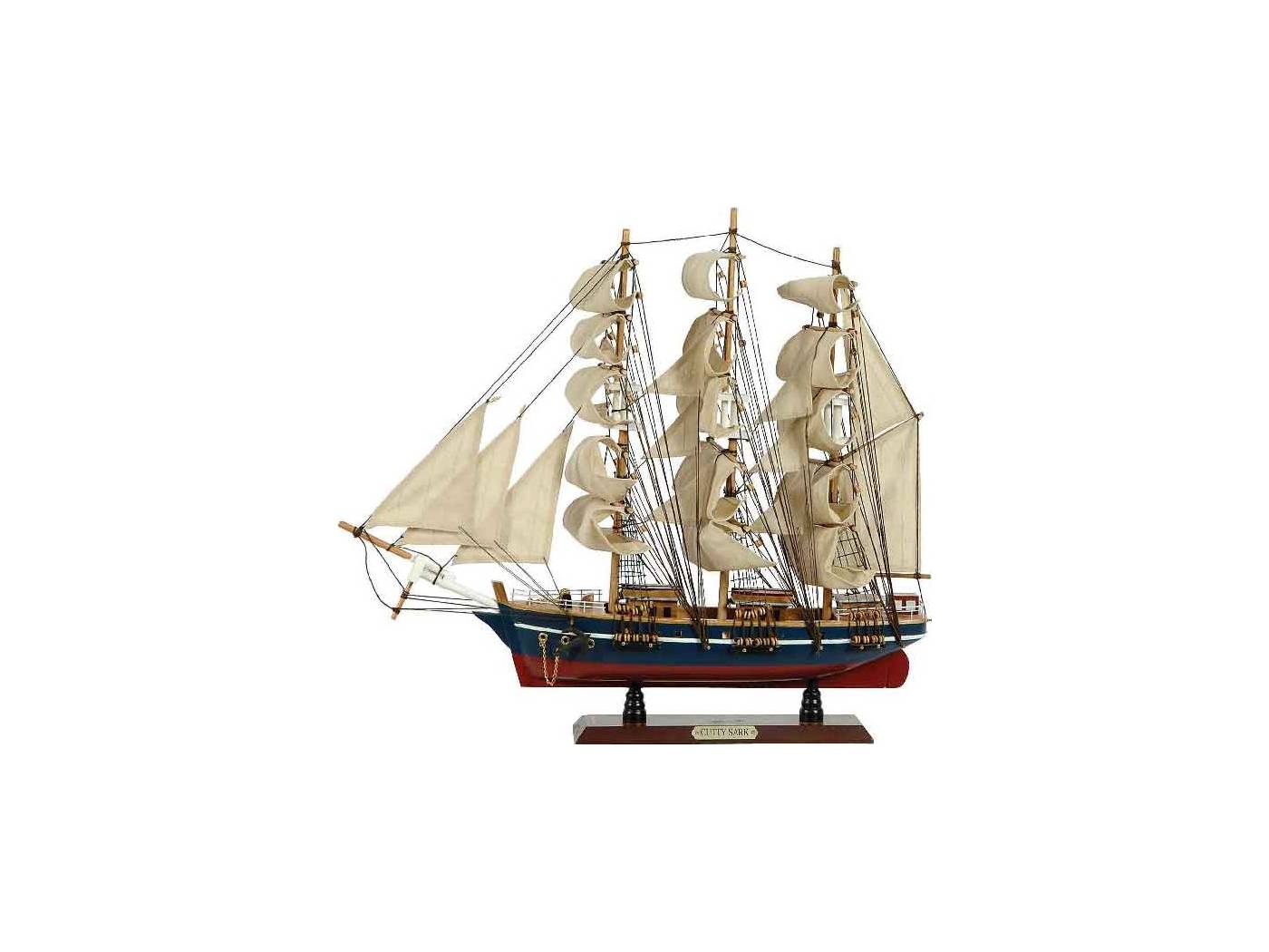 Ξύλινο Παραδοσιακό Καράβι 70 x 13 x 60 (H) εκ. Χρώμα Μπλέ-Κόκκινο