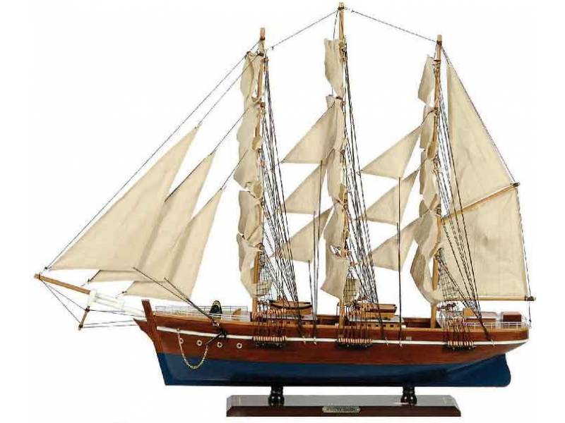 Ξύλινο Παραδοσιακό Καράβι 70 x 13 x 60 (H) εκ. Χρώμα Καφέ-Μπλέ