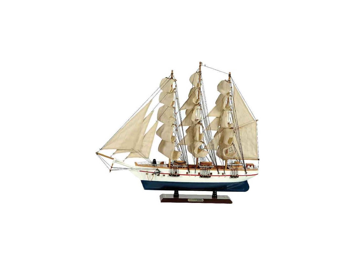 Ξύλινο Παραδοσιακό Καράβι 120 x 19 x 97 (H) εκ. Χρώμα Λευκό-Μπλέ