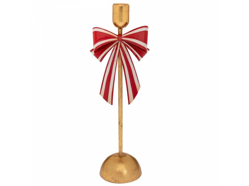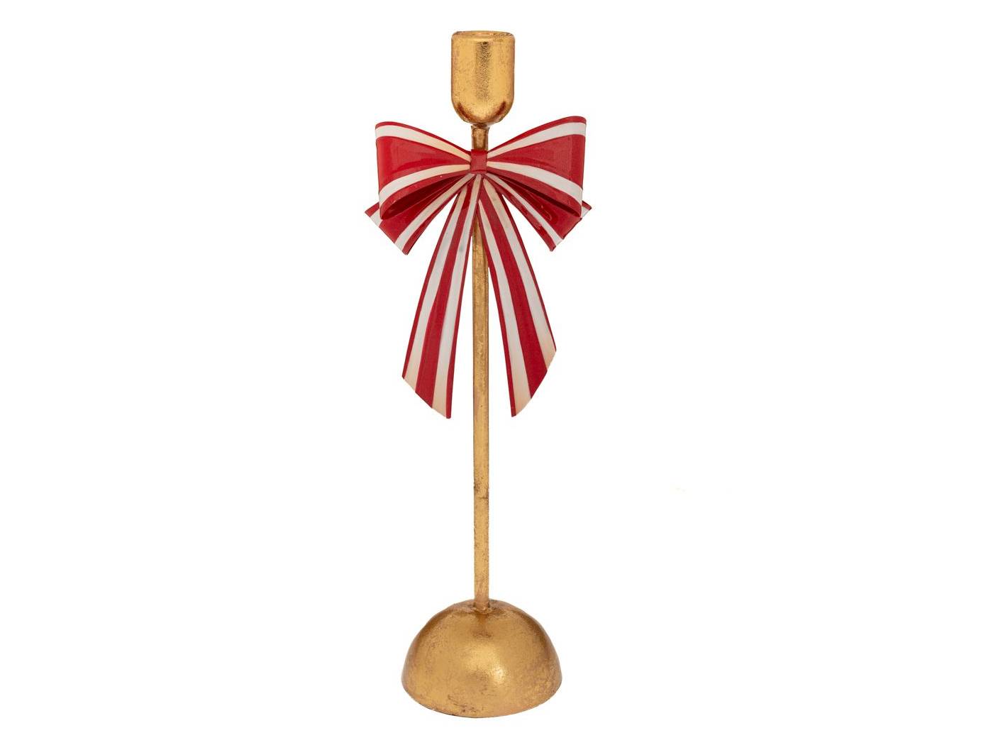 Χρυσο μεταλλικο κηροπηγιο με κοκκινο ασπρο φιογκο 11.5X9.4X35.7EK