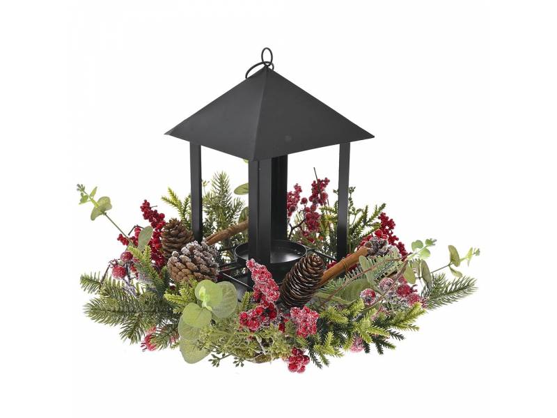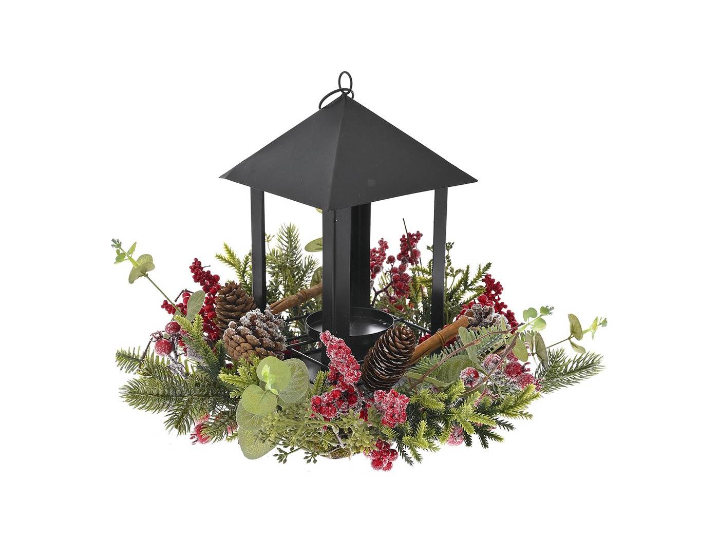 Μαύρο φανάρι μέσα σε στεφάνι με κόκκινα BERRIES KAI στικ κανέλας 33x28 εκ.-bigstore.gr