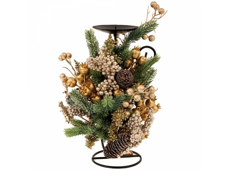 Πράσινο κηροπήγιο με σαμπάνι BERRIES και κουκουνάρια 33 εκ.-bigstore.gr