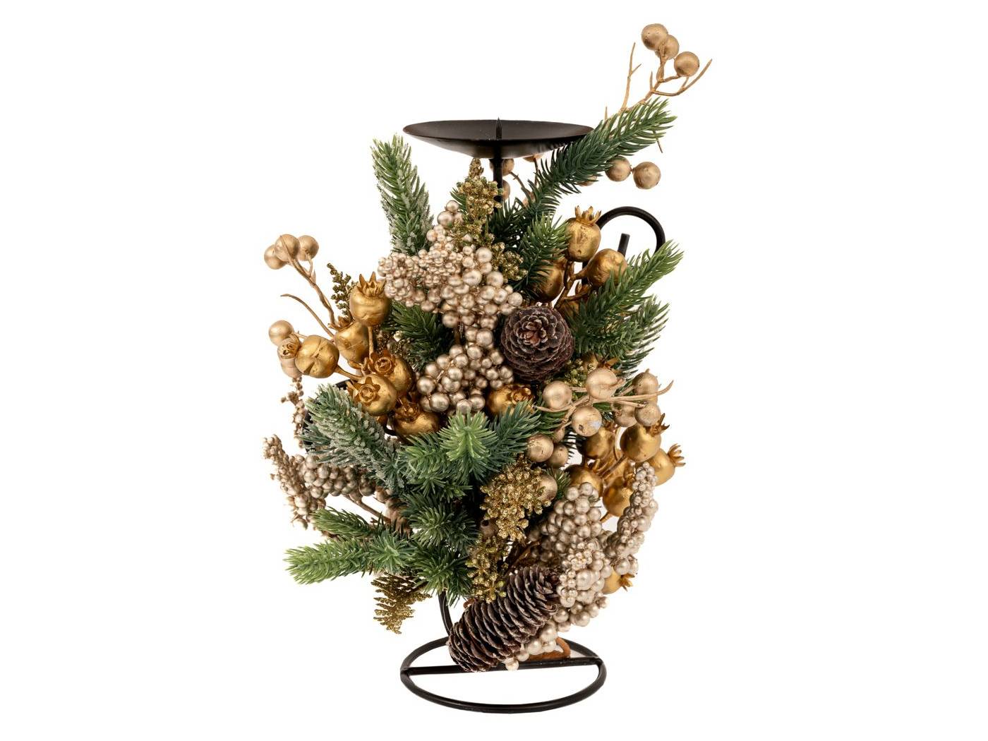 Πράσινο κηροπήγιο με σαμπάνι BERRIES και κουκουνάρια 33 εκ.
