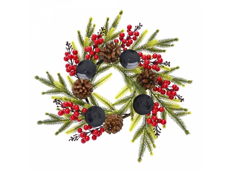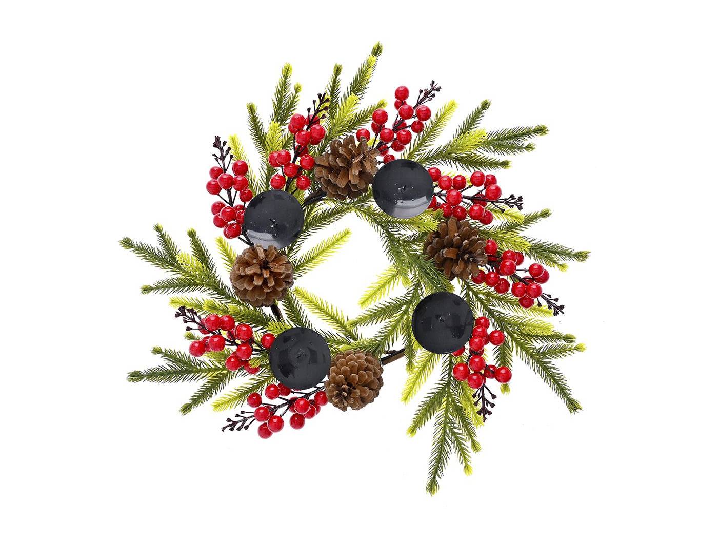 Πράσινο στεφάνι τραπεζιού με BERRIES 45 εκ. με 4θεσεων για κερί κορμό-bigstore.gr