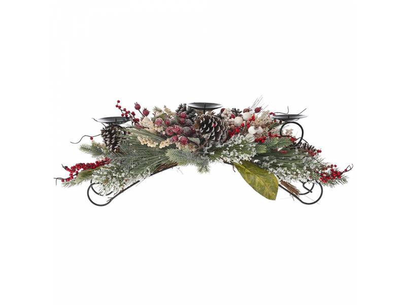 Κηροπήγιο με κόκκινα και χρυσά BERRIES 65x25 εκ.