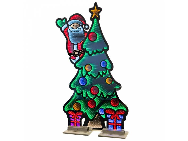 INFINITY φωτιζόμενο δέντρο με Άγιο Βασίλη 102x73 εκ. διπλής όψης σε ξύλινη βάση