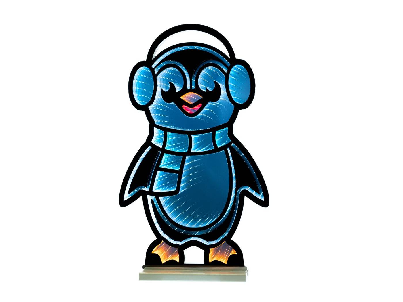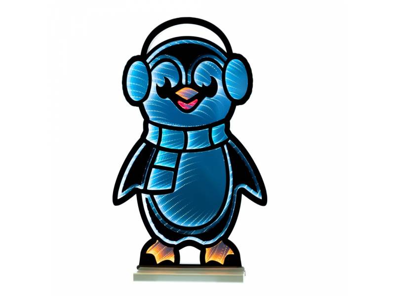 INFINITY φωτιζόμενος μπλε πιγκουίνος 37x60 εκ. διπλής όψης σε ξύλινη βάση