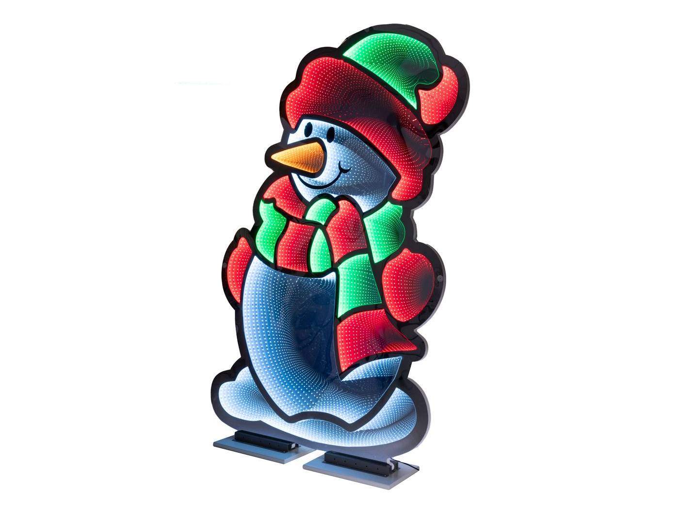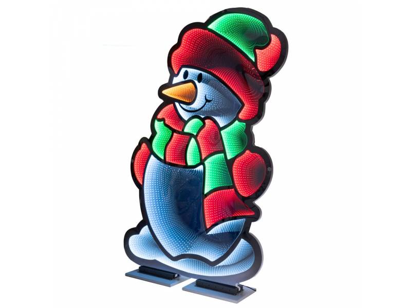 Χριστουγεννιάτικη διακοσμητική φιγούρα χιονάνθρωπου. Είναι διπλής όψης και είναι στερεωμένη σε αλουμινένια βάση.