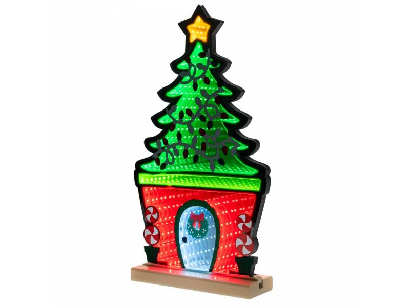 INFINITY φωτιζόμενο δένδρο σπιτάκι 23x40 εκ. διπλής όψης σε ξύλινη βάση-bigstore.gr