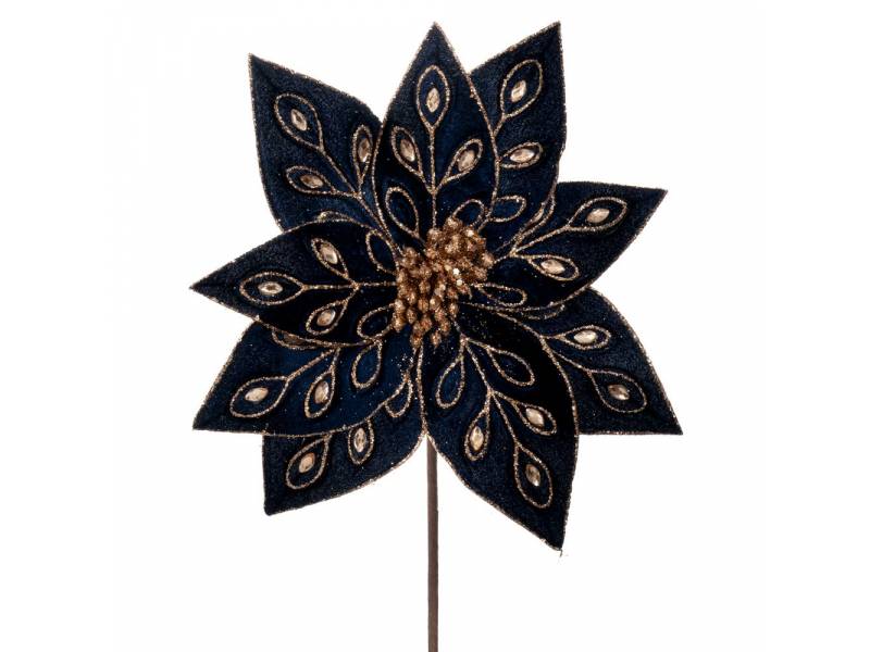 Μπλε βελούδινο αλεξανδρινό με διαμαντάκια κλαδί 60 εκ.-bigstore.gr