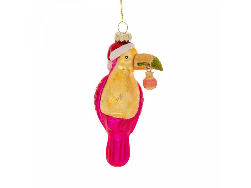 Ροζ γυάλινο τουκάν κρεμαστό στολίδι 7x4.5x12 εκ.-bigstore.gr