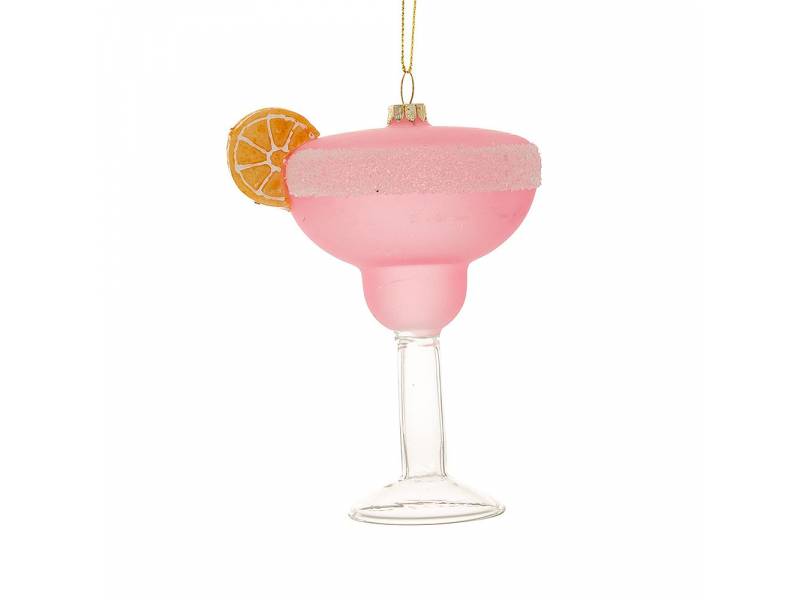 Ροζ γυάλινο κρεμαστό στολίδι ποτήρι κοκτέιλ 9,5x12,5 εκ.-bigstore.gr