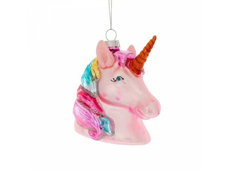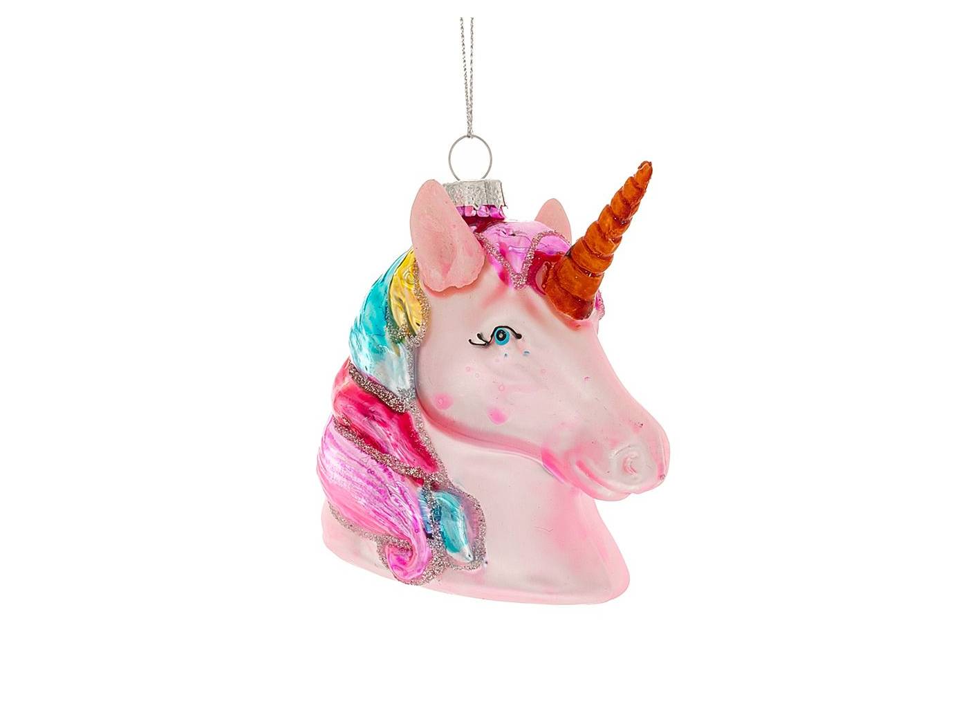 Ροζ γυάλινο κρεμαστό στολίδι μονόκερως 8x5,5x9 εκ.-bigstore.gr