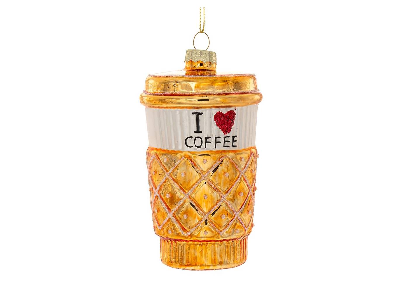 Χρυσή γυάλινη κούπα καφέ κρεμαστό στολίδι 6x6x11,5 εκ.-bigstore.gr
