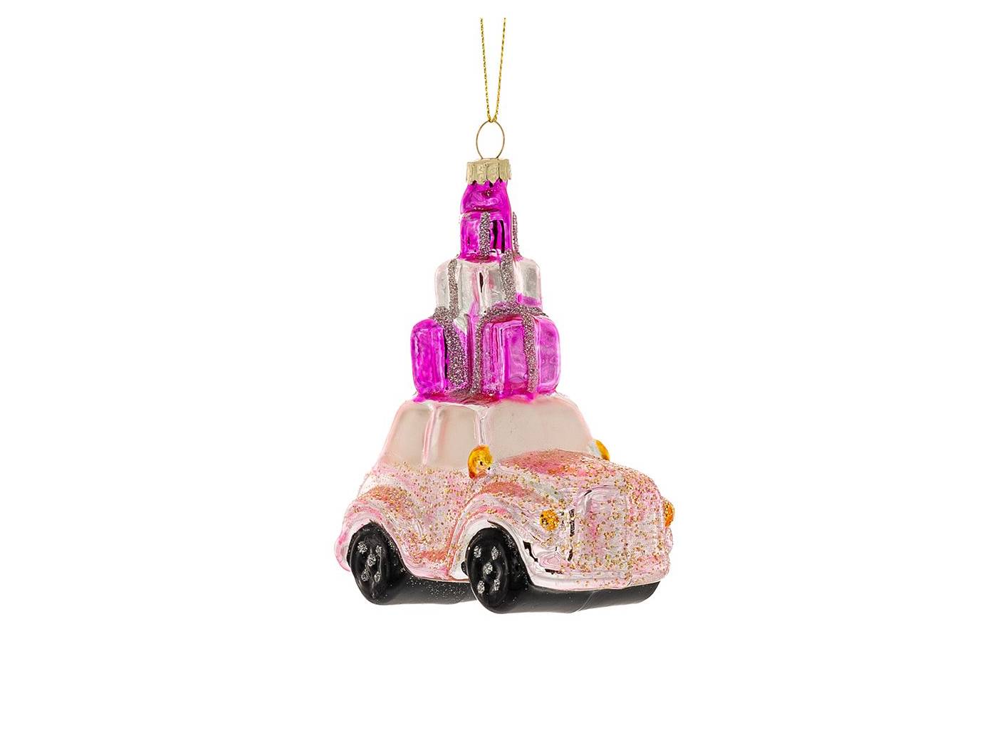 Ροζ γυάλινο κρεμαστό στολίδι αυτοκίνητο με δώρα 9,5x5x11 εκ.-bigstore.gr
