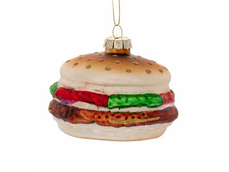 Καφέ γυάλινο BURGER κρεμαστό στολίδι 9x9x7 εκ.-bigstore.gr