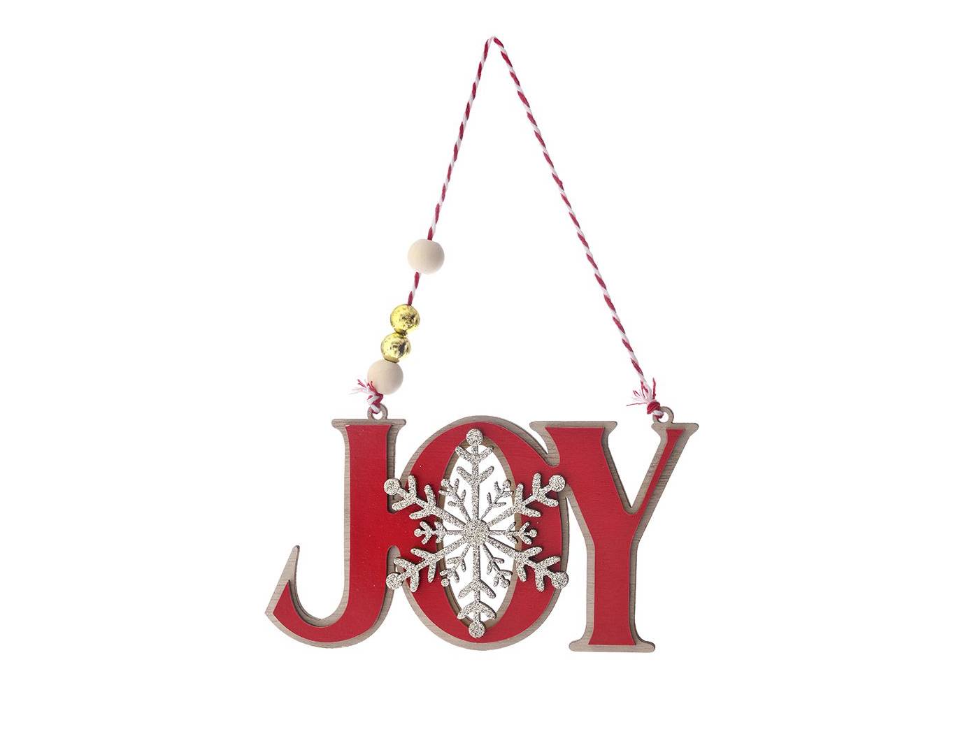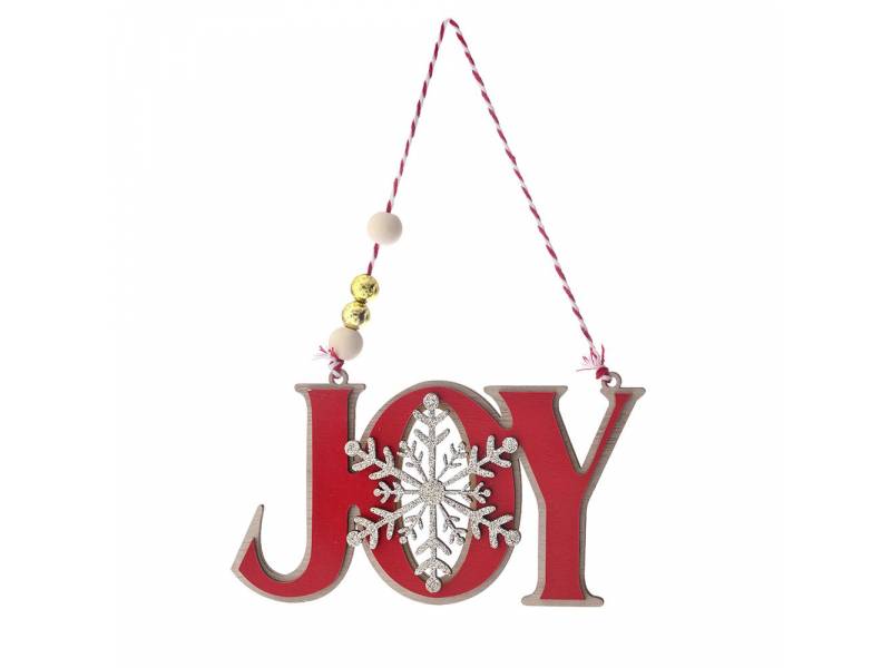 Κόκκινη ξύλινη κρεμαστή πινακίδα joy, 14 χ 9 εκ.