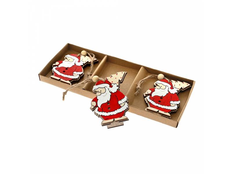 Κόκκινος ξύλινος κρεμαστός άγιος Βασίλης στολίδι 22x8 εκ. σετ 3-bigstore.gr