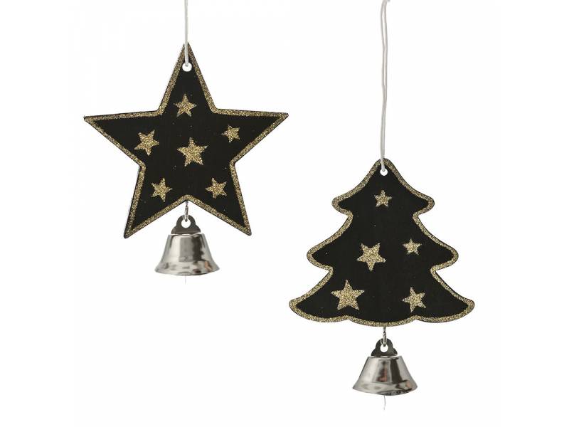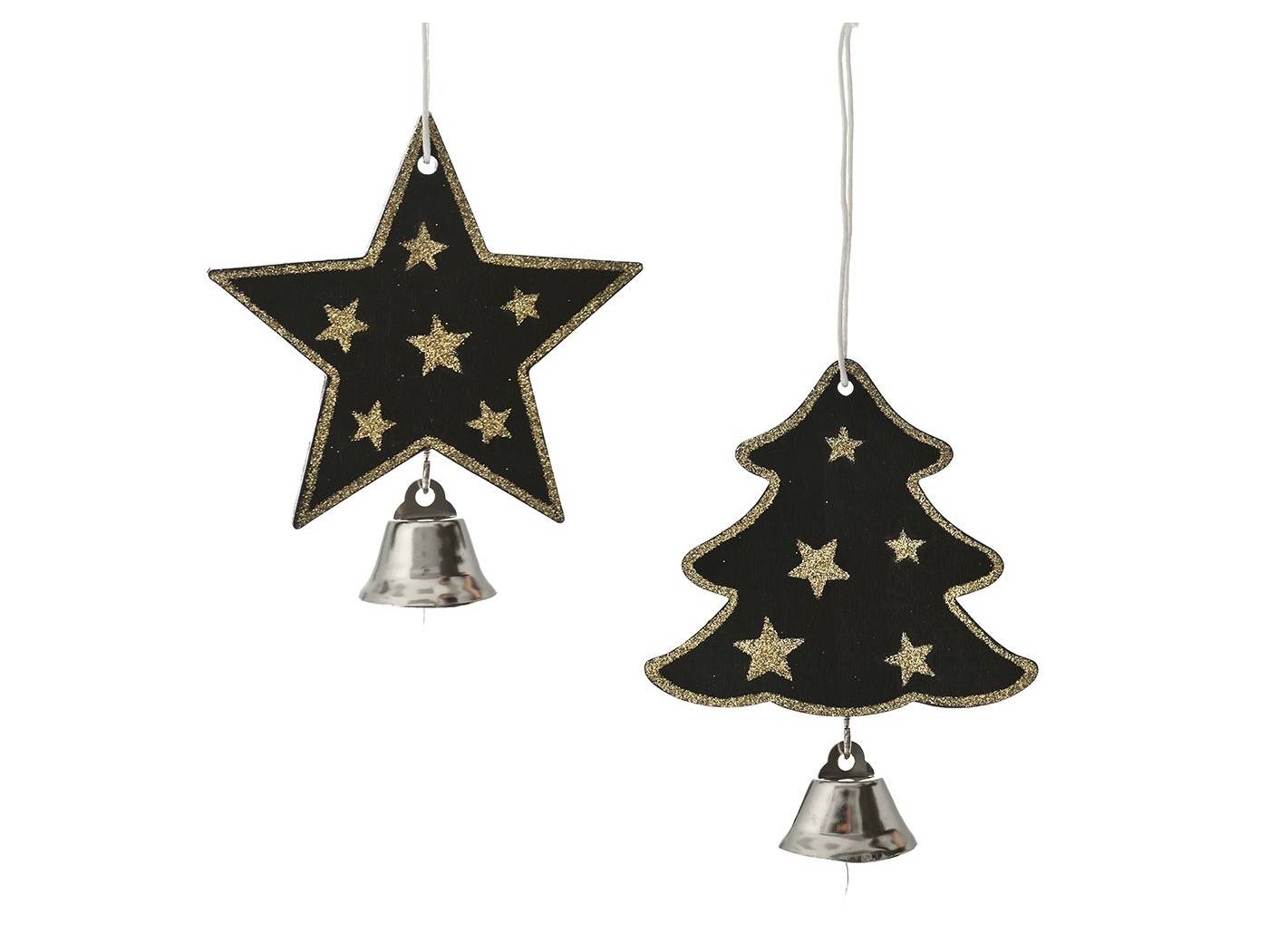 Μαύρα κρεμαστά στολίδια αστέρι δένδρο 2 σχέδια 8x10 εκ.