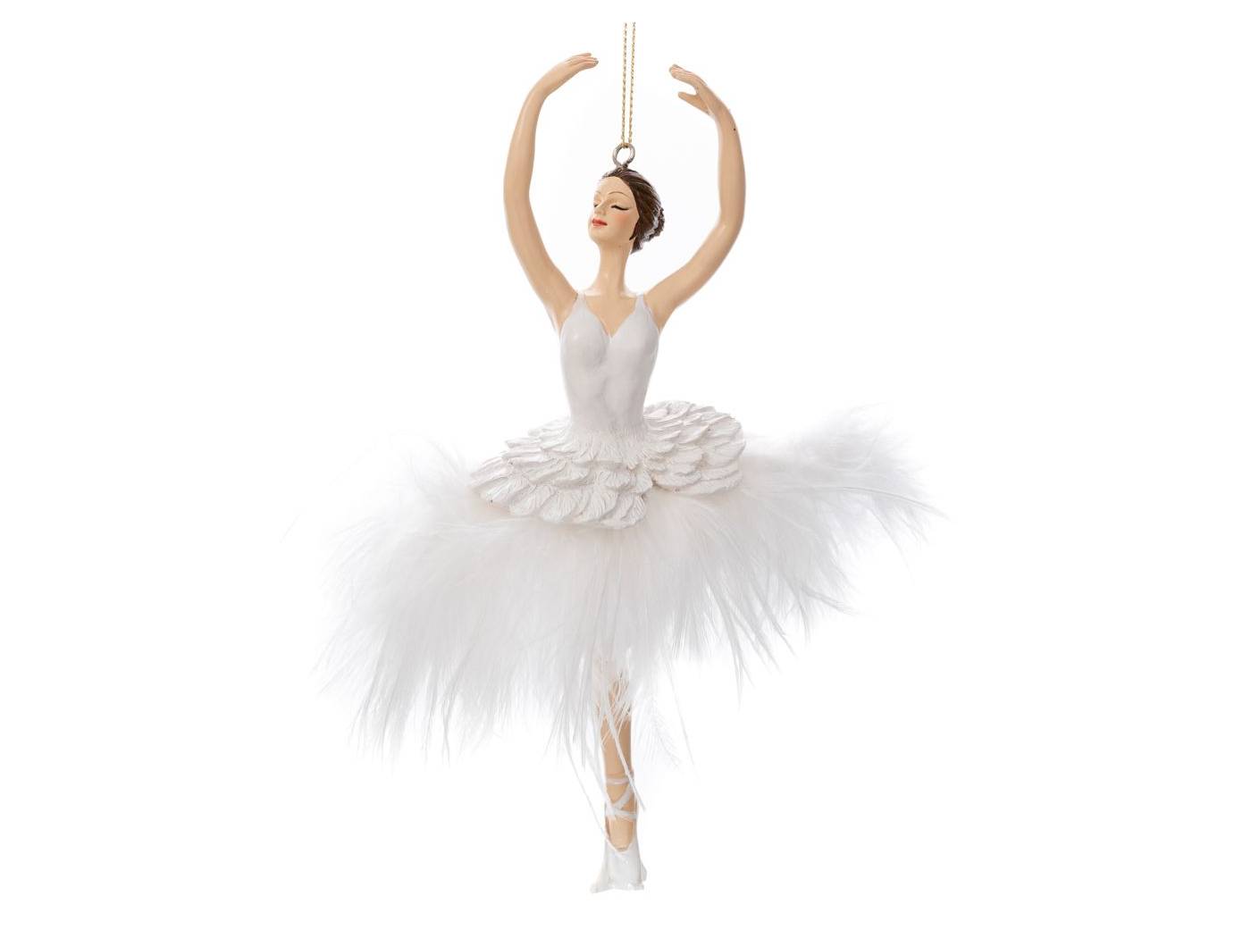 Λευκή πολυρεζίν μπάλαρίνα με πούπουλα κρεμαστό στολίδι 8,5x6,5x21 εκ.-bigstore.gr