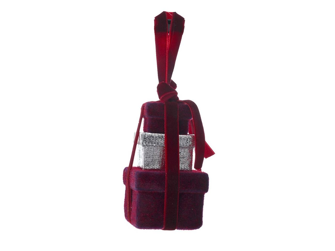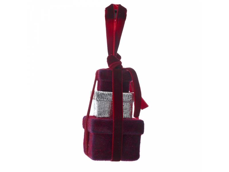 Μπορντό βελούδινο κρεμαστό τριπλό δωράκι 6x6x10 εκ.