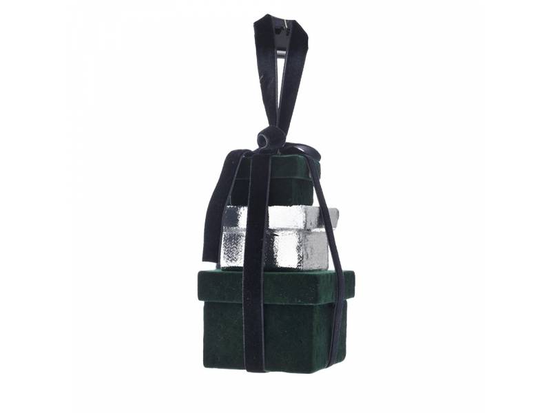 Πράσινο βελούδινο κρεμαστό τριπλό δωράκι 6x6x10 εκ.