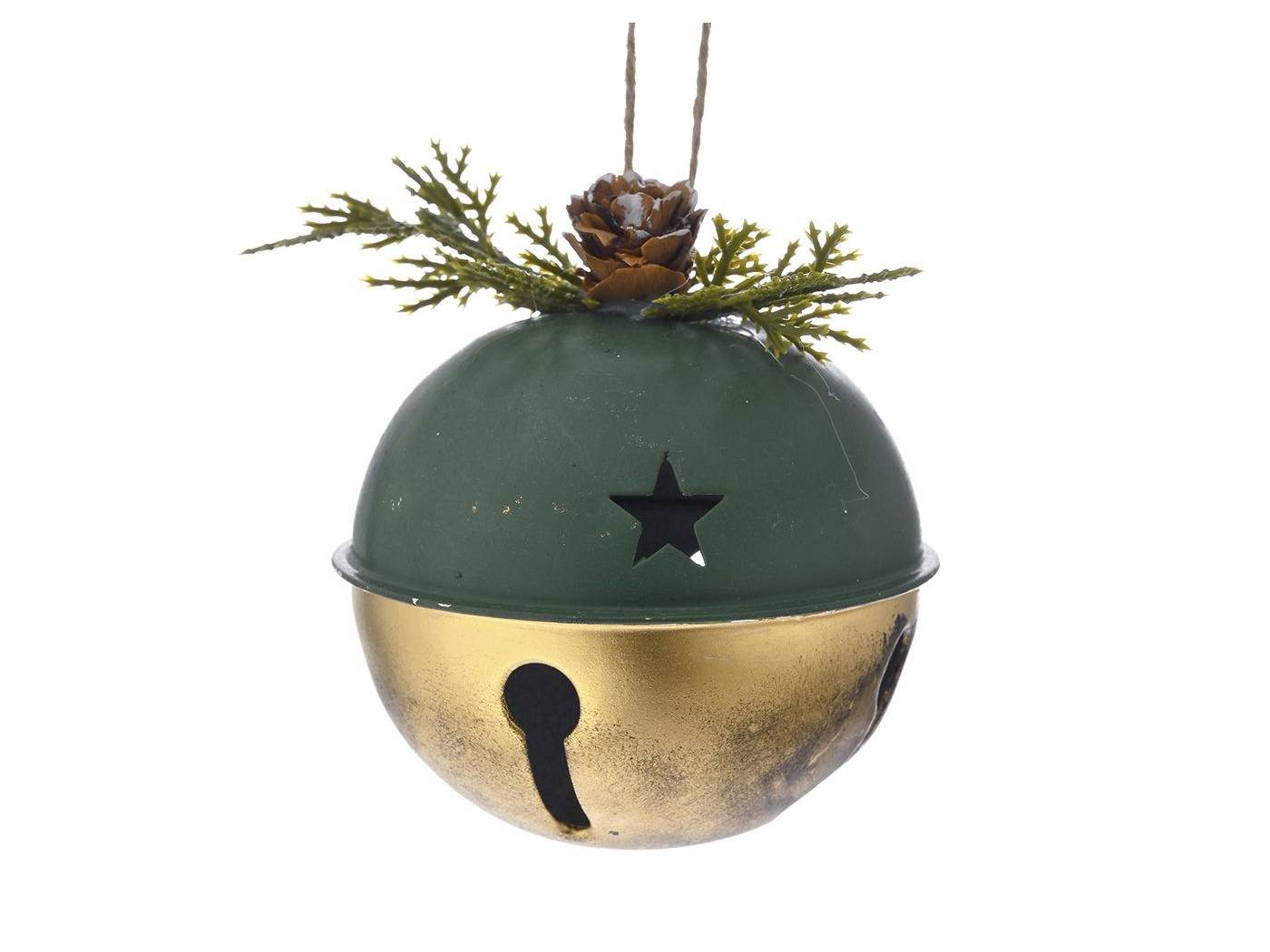 Χρυσό πράσινο μεταλλικό κρεμαστό κουδούνι 8 εκ.-bigstore.gr