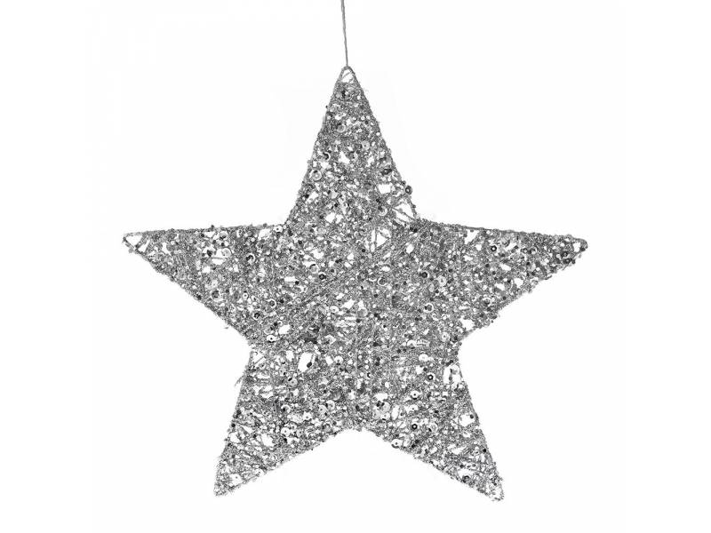 Ασημί κρεμαστό αστέρι 25 εκ.-bigstore.gr