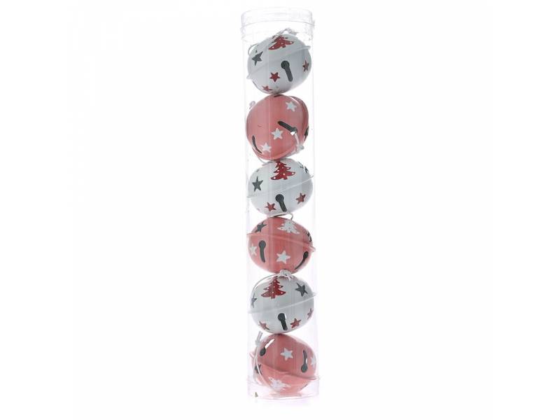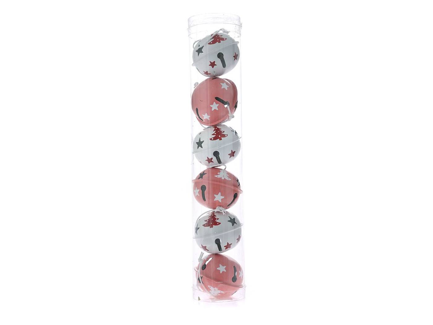 Λευκά ροζ μεταλλικά κουδούνια με σχέδιο δέντρα 5 εκ. σετ 6-bigstore.gr
