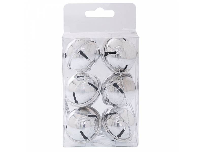 Σετ 6 ασημί μεταλλικά κουδουνάκια 3.5 εκ.-bigstore.gr