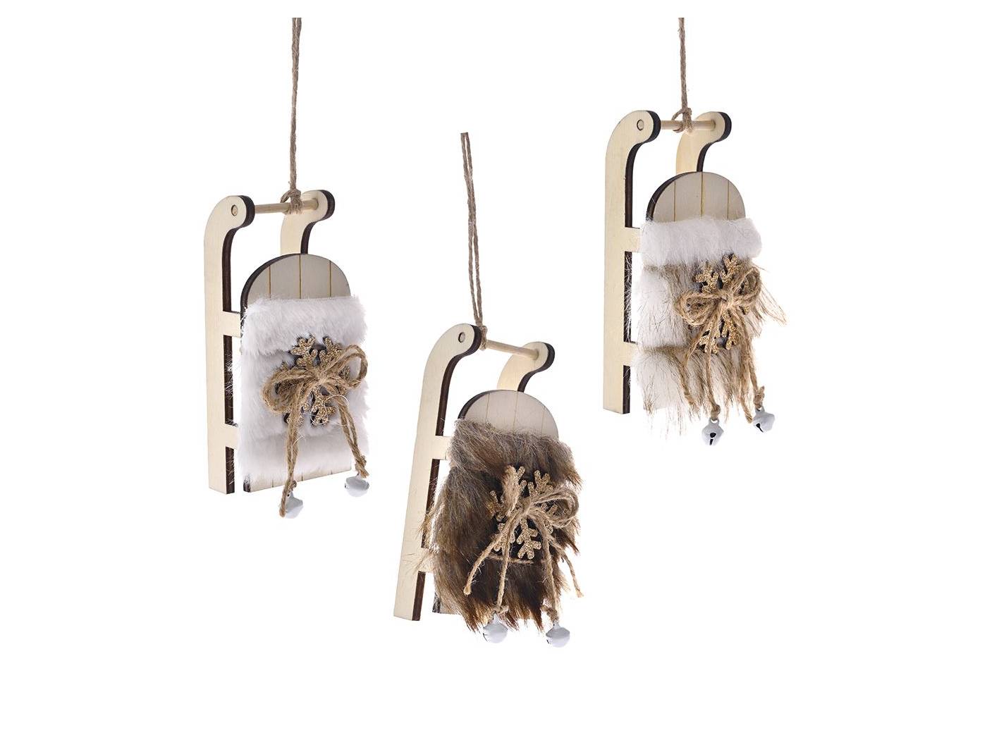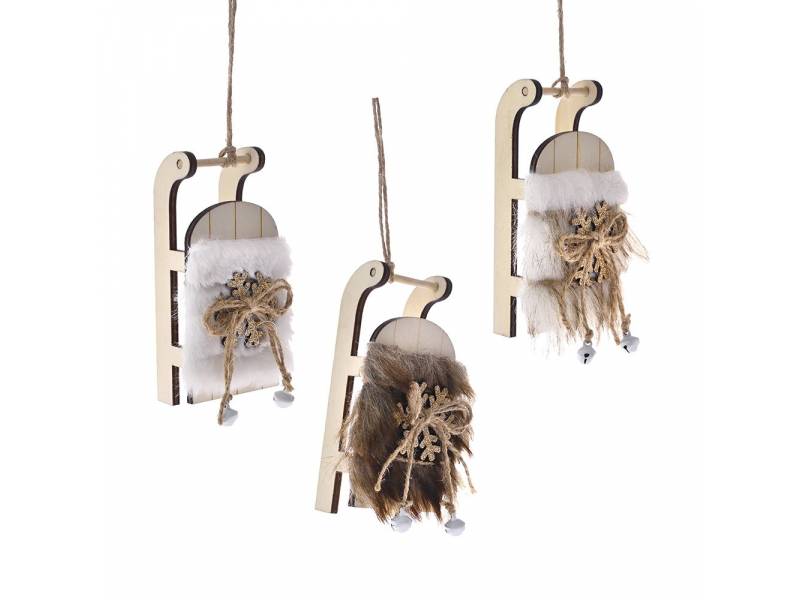 Γούνινα ξύλινα κρεμαστά τσολιά έλκηθρο, 4χ12χ6 εκ. σετ 3