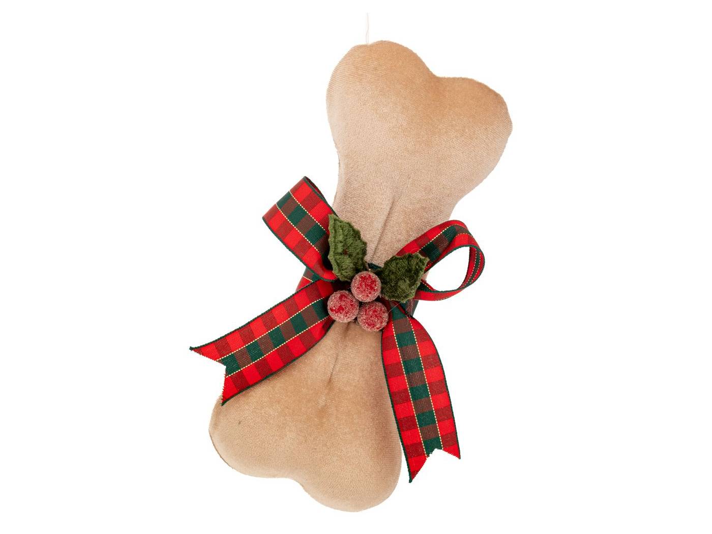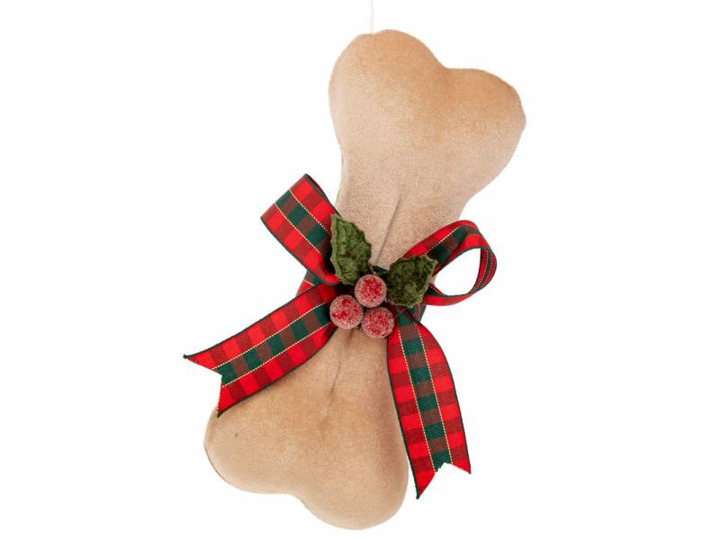 Μπεζ υφασμάτινο κρεμαστό στολίδι κόκκαλο σκύλου με φιόγκο 9x6x20 εκ.-bigstore.gr