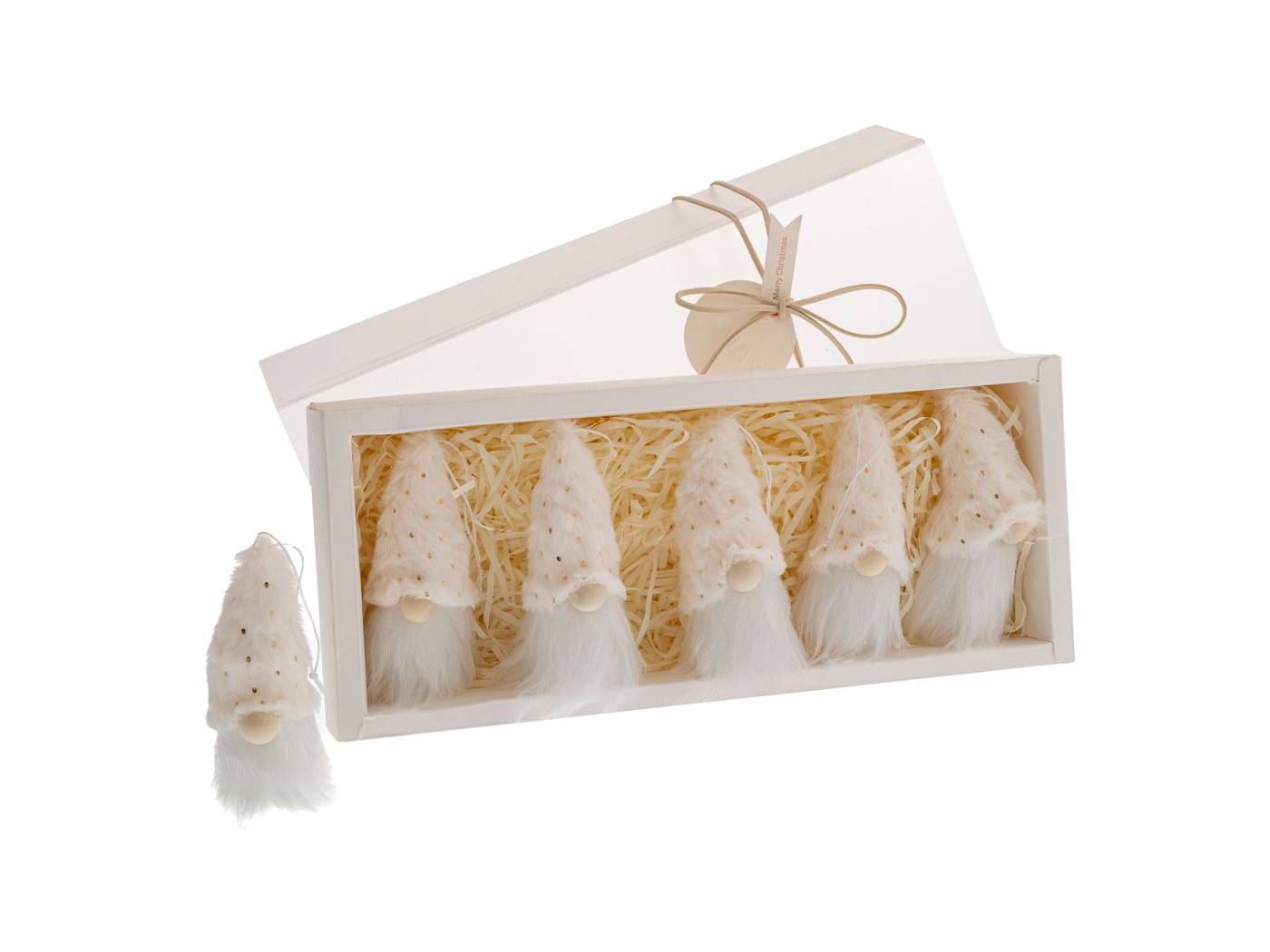 Σετ 6 λευκά χνουδωτά στολίδια 10 εκ. σε κουτί 31x13x5 εκ.