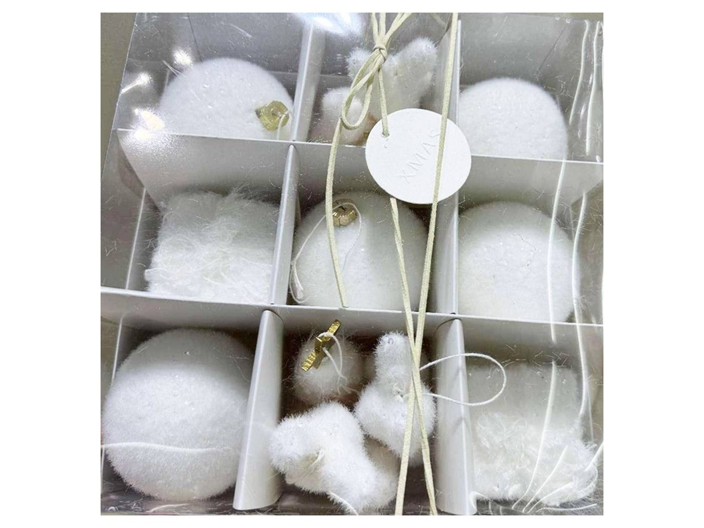 Σετ 12 λευκά υφασμάτινα στολίδια σε κουτί 24x24x10 εκ.-bigstore.gr