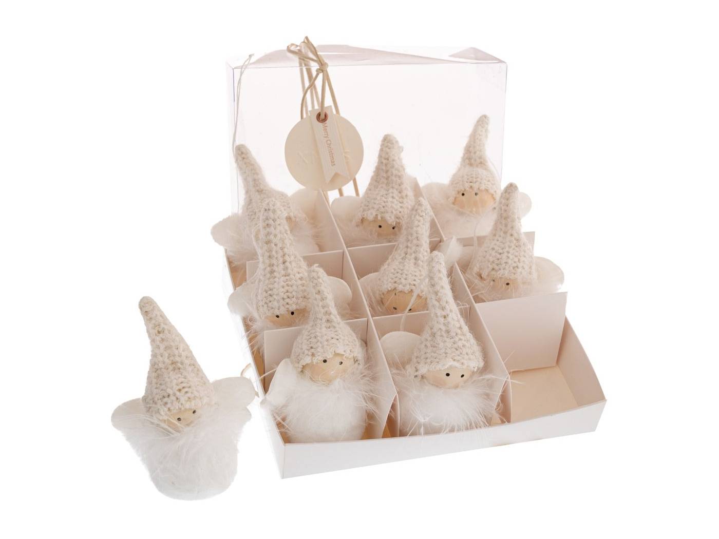 Σετ 9 λευκά υφασμάτινα στολίδια άγγελοι 6x8 εκ. σε κουτί 18x18x6 εκ.-bigstore.gr