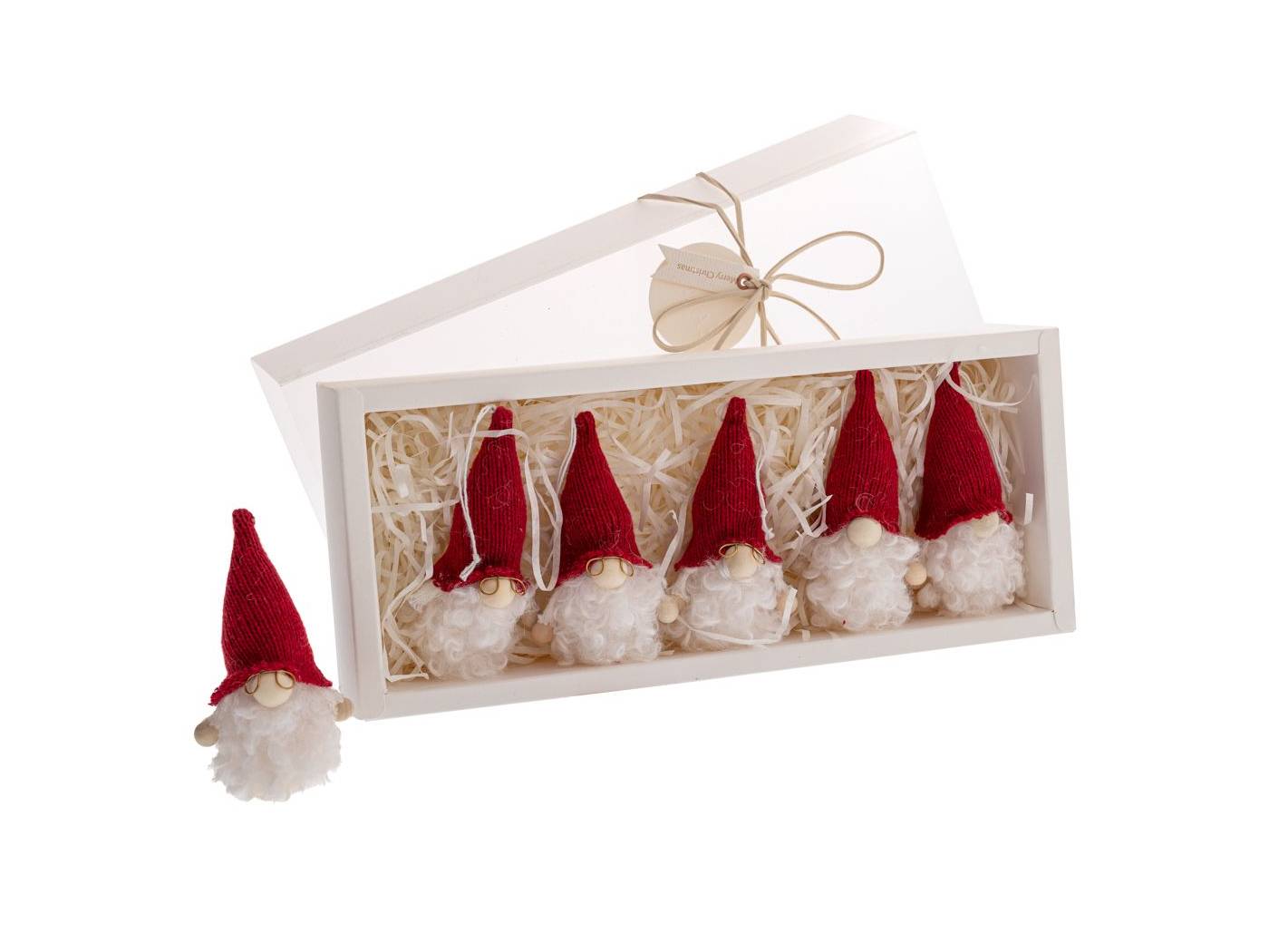 Σετ 6 κόκκινα υφασμάτινα στολίδια νάνοι 10 εκ. σε κουτί 31x13x5 εκ.-bigstore.gr