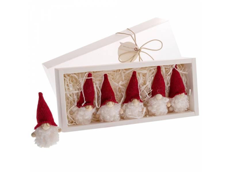 Σετ 6 κόκκινα υφασμάτινα στολίδια νάνοι 10 εκ. σε κουτί 31x13x5 εκ.-bigstore.gr