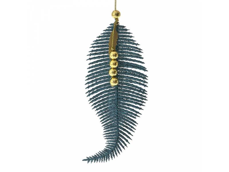 Γαλάζιο πλαστικό κρεμαστό στολίδι φύλλο 7x19 εκ.