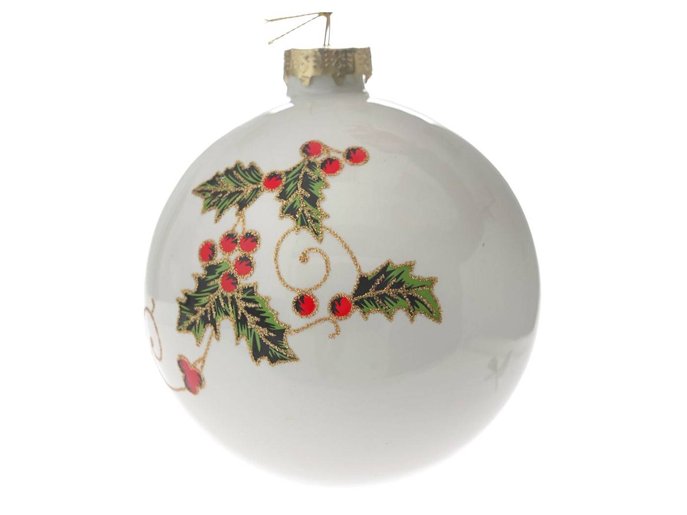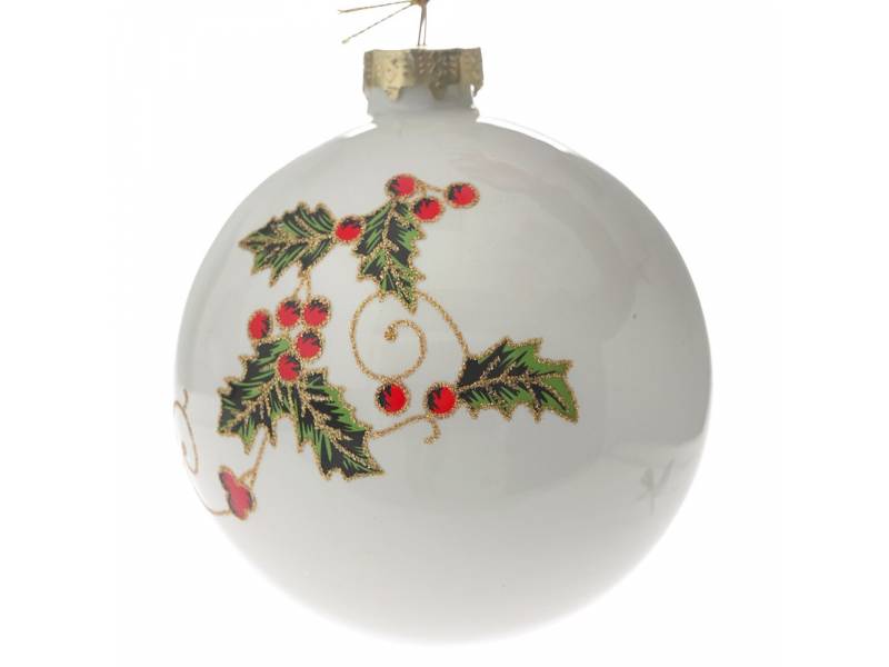 Λευκή με γκι μπάλα γυάλινη 10 εκ. σετ 4