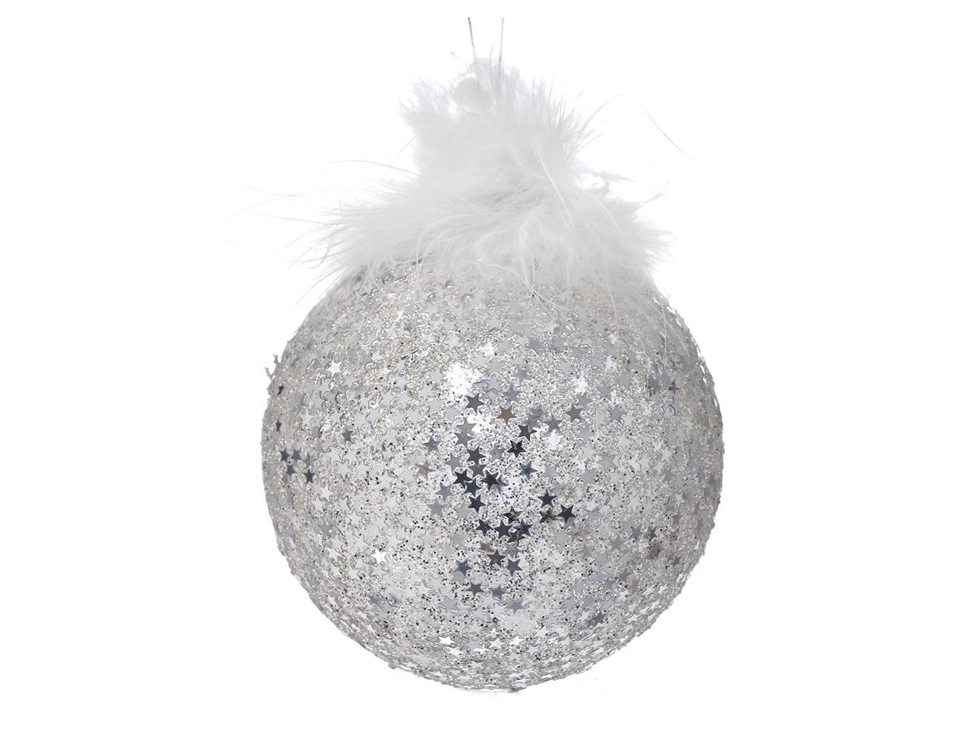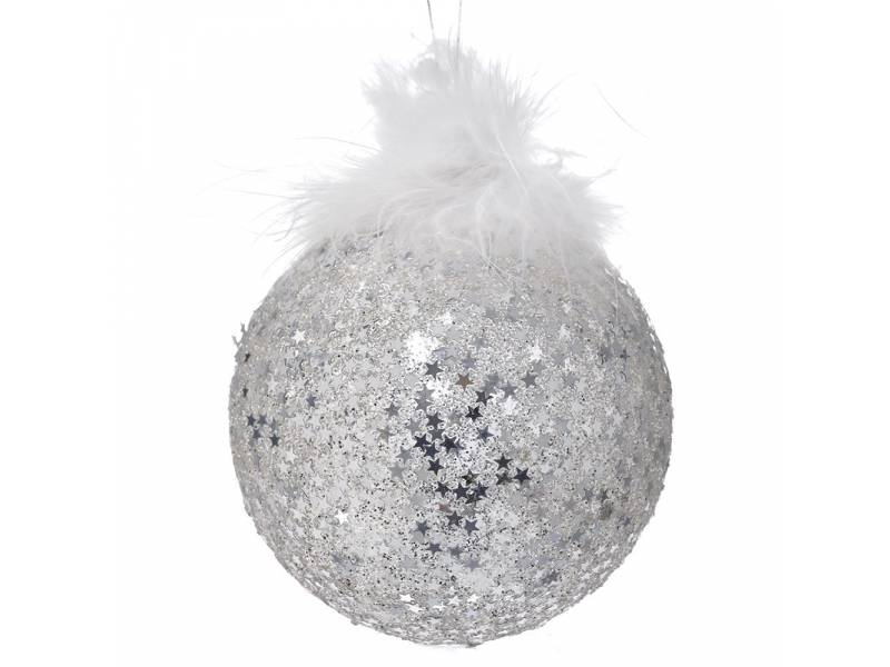 Ασημί γυάλινη μπάλα 10 εκ. σετ 4 με πούπουλα-bigstore.gr