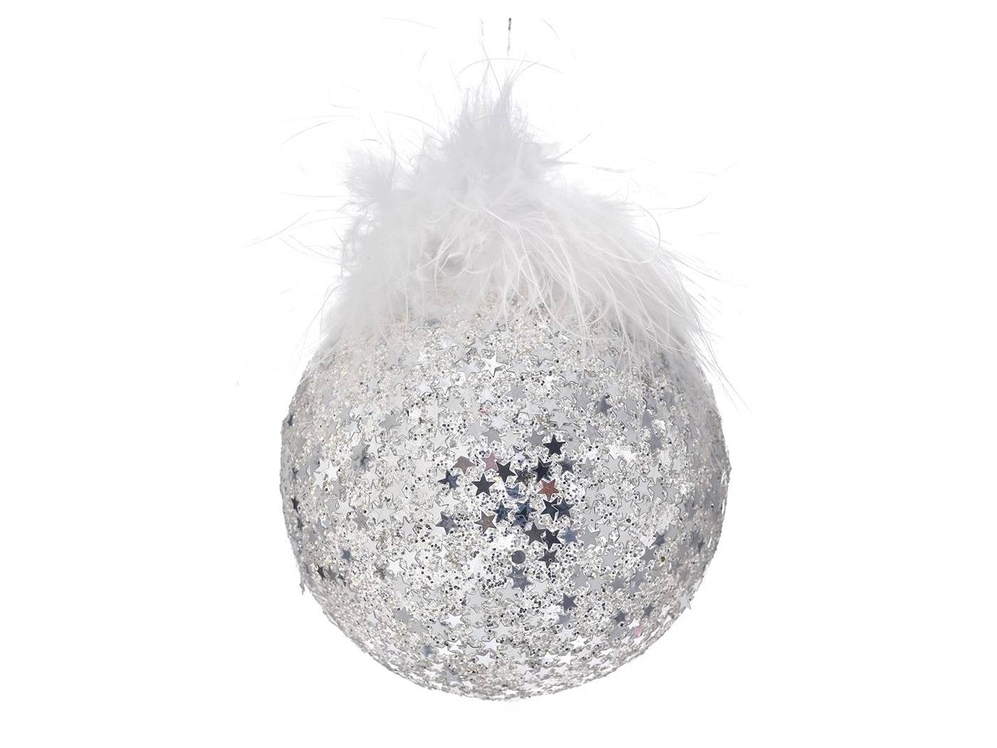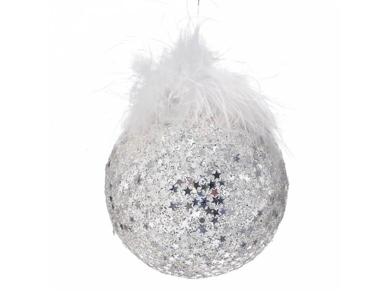 Ασημί γυάλινη μπάλα 8 εκ. σετ 6 με πούπουλα-bigstore.gr