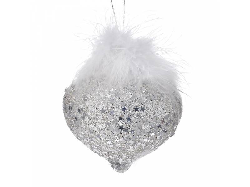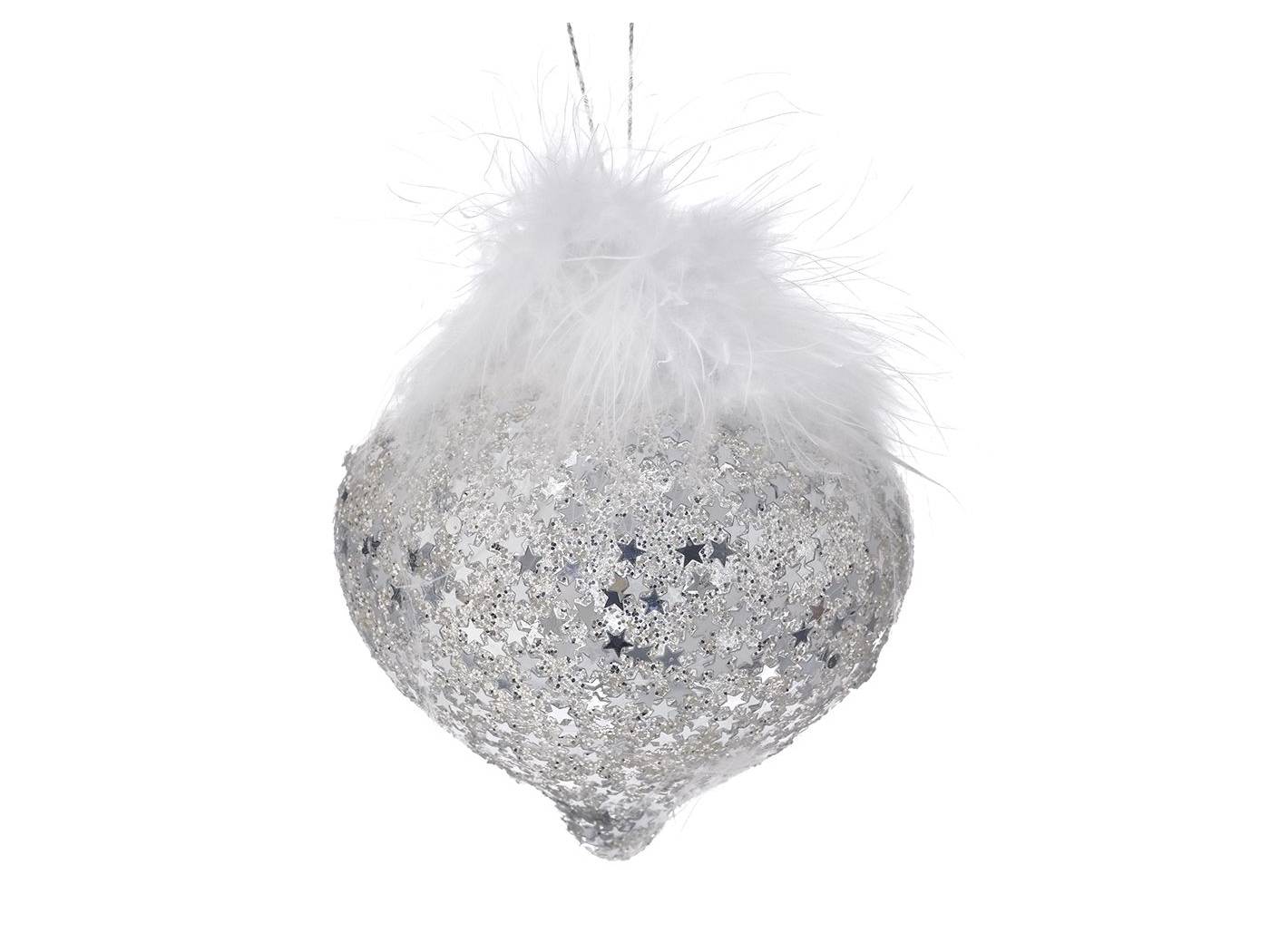 Ασημί γυάλινο δάκρυ 8 εκ. σετ 6 με πούπουλα-bigstore.gr