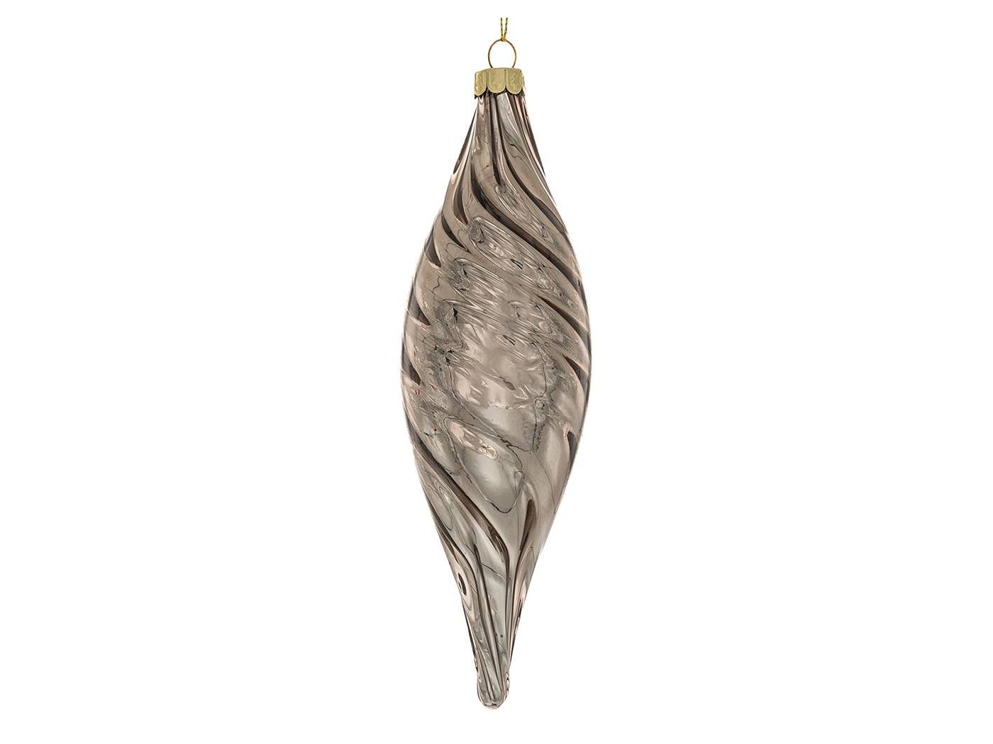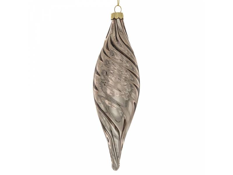 Ασημί ριγέ γυάλινο στολίδι 14 εκ. σετ 6