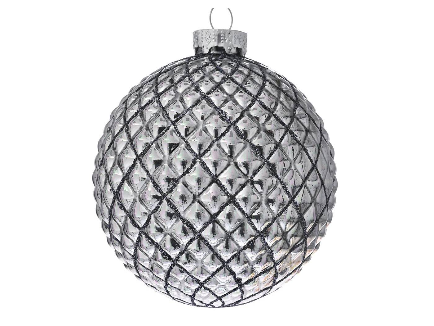 Ανθρακί ανάγλυφη γυάλινη μπάλα 8 εκ. σετ 6-bigstore.gr