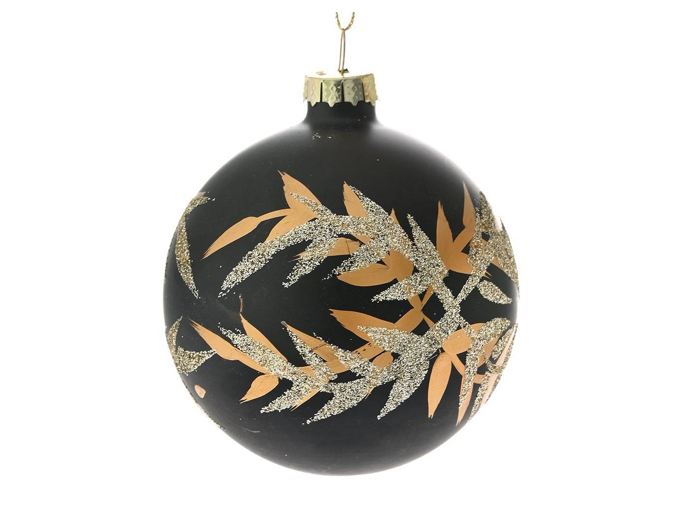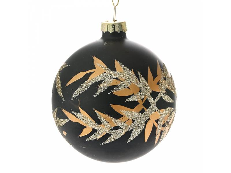 Μαύρη ματ γυάλινη μπάλα με χρυσά φύλλα 8 εκ. σετ 6