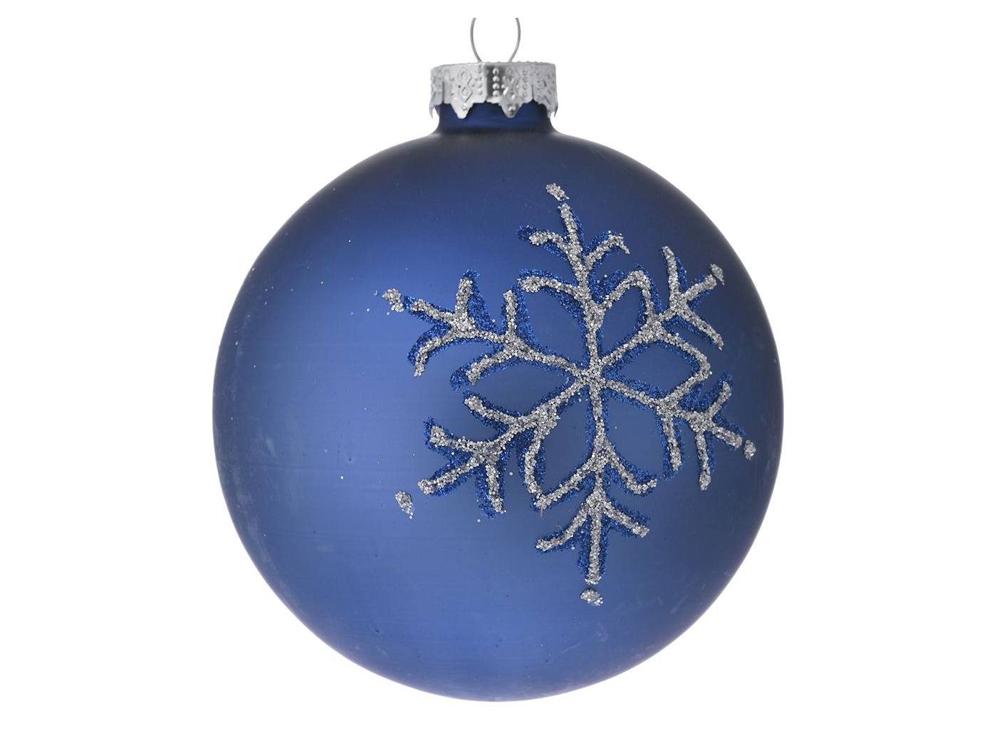 Μπλε γυάλινη μπάλα με χιονονιφάδα 10 εκ. σετ 4-bigstore.gr