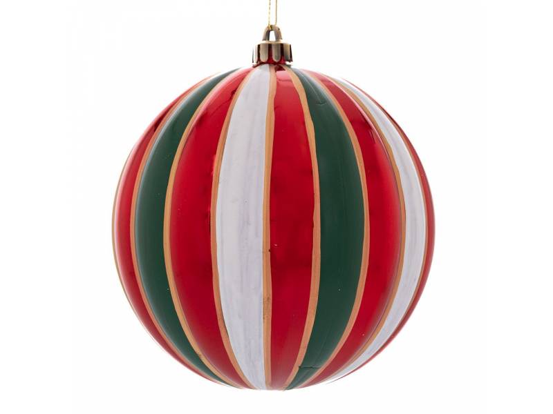 Χριστουγεννιάτικα στολίδια συνθετικά. Τρίχρωμη πλαστική μπάλα 8 εκ.