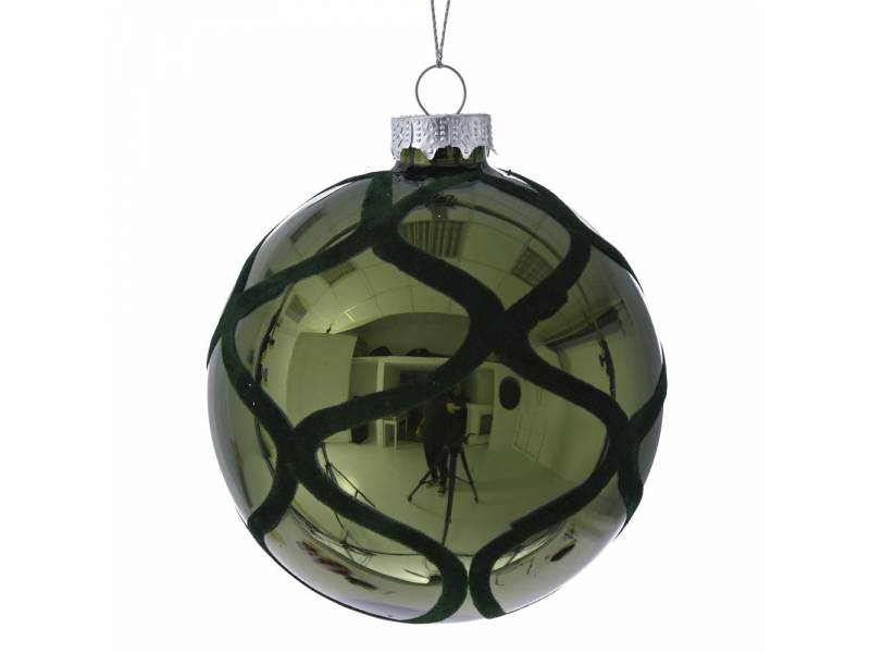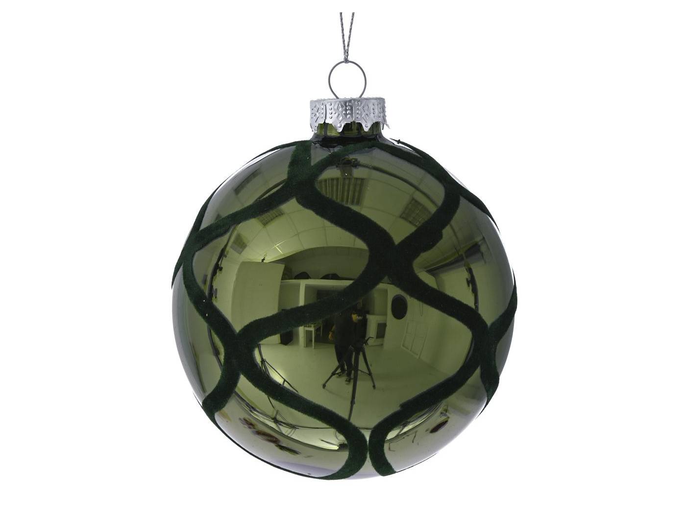 Πράσινη γυάλινη μπάλα 10 εκ. σετ 4 με βελούδο-bigstore.gr